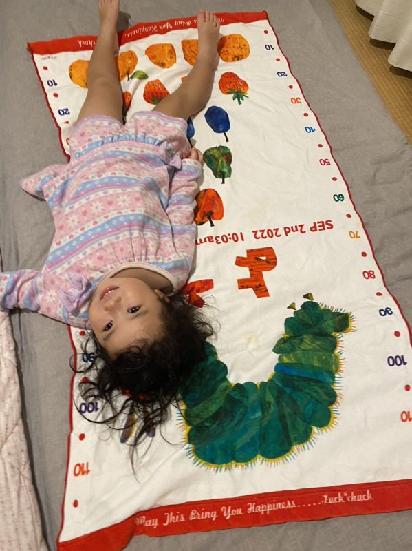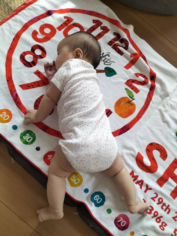 お昼寝にピッタリ!購入者 さん大好きなはらぺこあおむしの柄に、娘の名前や生年月日が入ってて大満足の商品でした!時計も産まれた時間になっているので、世界に1つだけのプレゼントができて嬉しく思っています。お昼寝のときに下に敷いていますが、大きめのサイズにしたので、成長してからもしばらく使えそうです。このレビューは参考になりましたか?