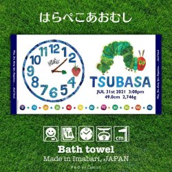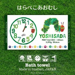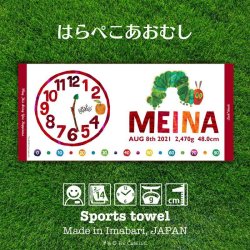 はらぺこあおむし|名入れバースタオル|Lサイズ|今治製|うまれたじかん|ECクロック|レッド [EC-IBT-CLO-RD]