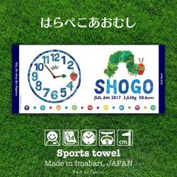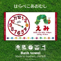 はらぺこあおむし|名入れバースタオル|Lサイズ|今治製|うまれたじかん|ECクロック|ブルー [EC-IBT-CLO-BU]