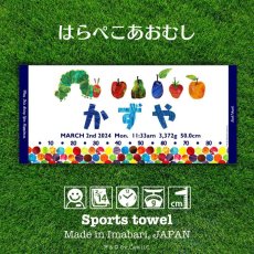 はらぺこあおむし|名入れバースタオル|Sサイズ|今治製|ドット|ブルー