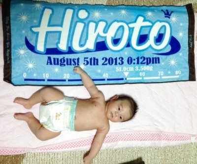 タオルと並べて寝かせてみて、 生まれた時よりこんなに大きくなったのかと実感すると共に、 子供の成長を喜びました。 画像を送った友人達みんなに、 可愛いタオルと言われて大満足です! from TOUIくん 5カ月