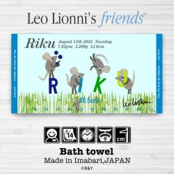 レオ・レオニ|名入れバースタオル|Lサイズ|今治製|せいくらべ|フレデリック|ブルー