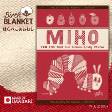 [今治製]はらぺこあおむし|名前入りバースブランケット|おくるみ|ライン|ブライトレッド