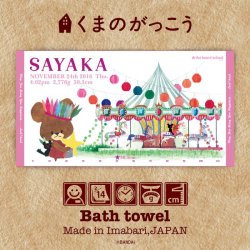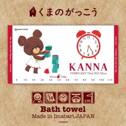 くまのがっこう|名入れバースタオル|Lサイズ|今治製|せいくらべ|トレジャー|レッド