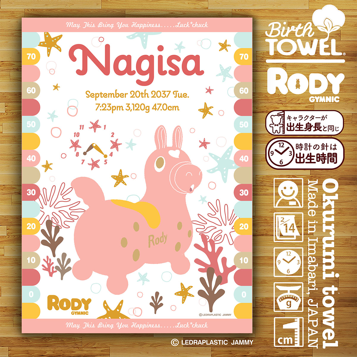 ロディ|名入れバースタオル|Mサイズ|今治製|うまれたじかん|せいくらべ|ララロディ|コーラル(ピンク) [RY-IOK-LAL-PK]